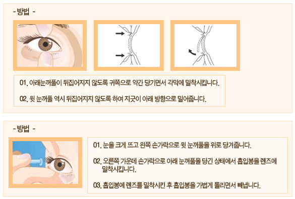 - 보존이 끝난 후 렌즈를 헹구지 않고 그대로 착용합니다.