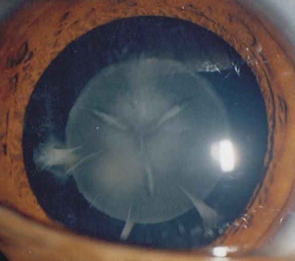 두 번째 사진은 층판백내장(lamellar cataract)으로 흔한 형태이며,