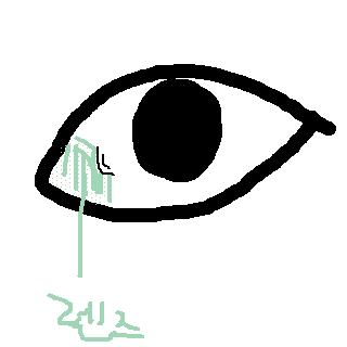 거울을 보니까 렌즈가 눈을 1mm정도 파고들어서