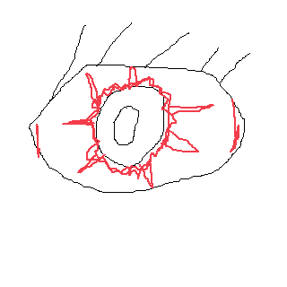 그림을 자세하게 잘 그려 주셨는데요, 그림과 같은 충혈 양상은 렌즈 때문에 생길 수 있습니다.